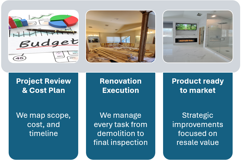 We handle every phase of your renovation project so you can focus on finding deals and maximizing ROI.